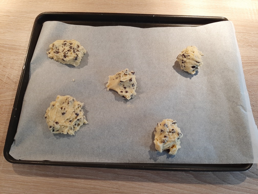 - Quand le tout est bien amalgamé, il suffit de faire de petites boules de pâte et de bien les espacer sur la plaque de cuisson.