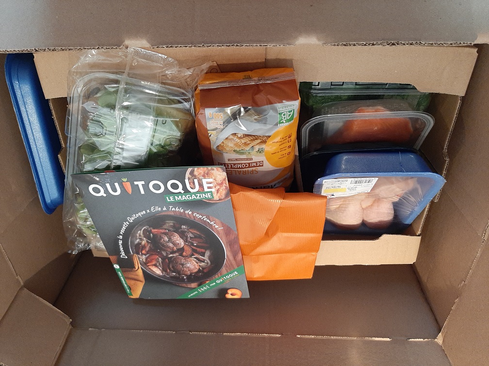 Il s’est donc renseigné et est tombé sur le site de Quitoque et a trouvé l’idée pas mal : ça lui faisait les repas de la semaine plus un ou deux repas du soir pour nous.