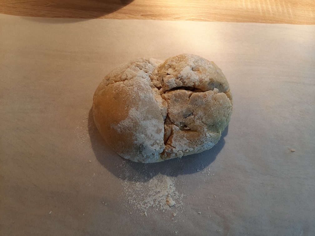 - Déposer la pâte sur une feuille de silicone et former à la main un boudin de 2,5 cm de diamètre environ;