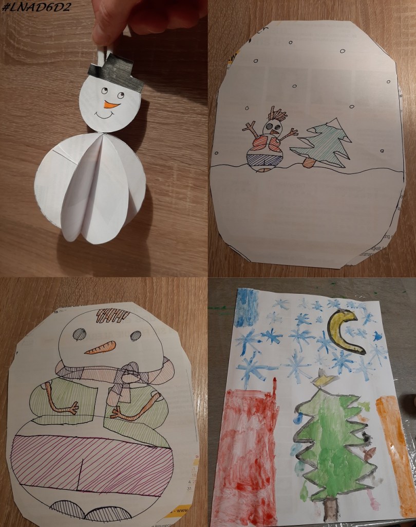 Dans leur calendrier « maison » ils ont trouvé leur petit mot du jour, le même pour tous les deux : Faire des bonhommes de neige en papier.