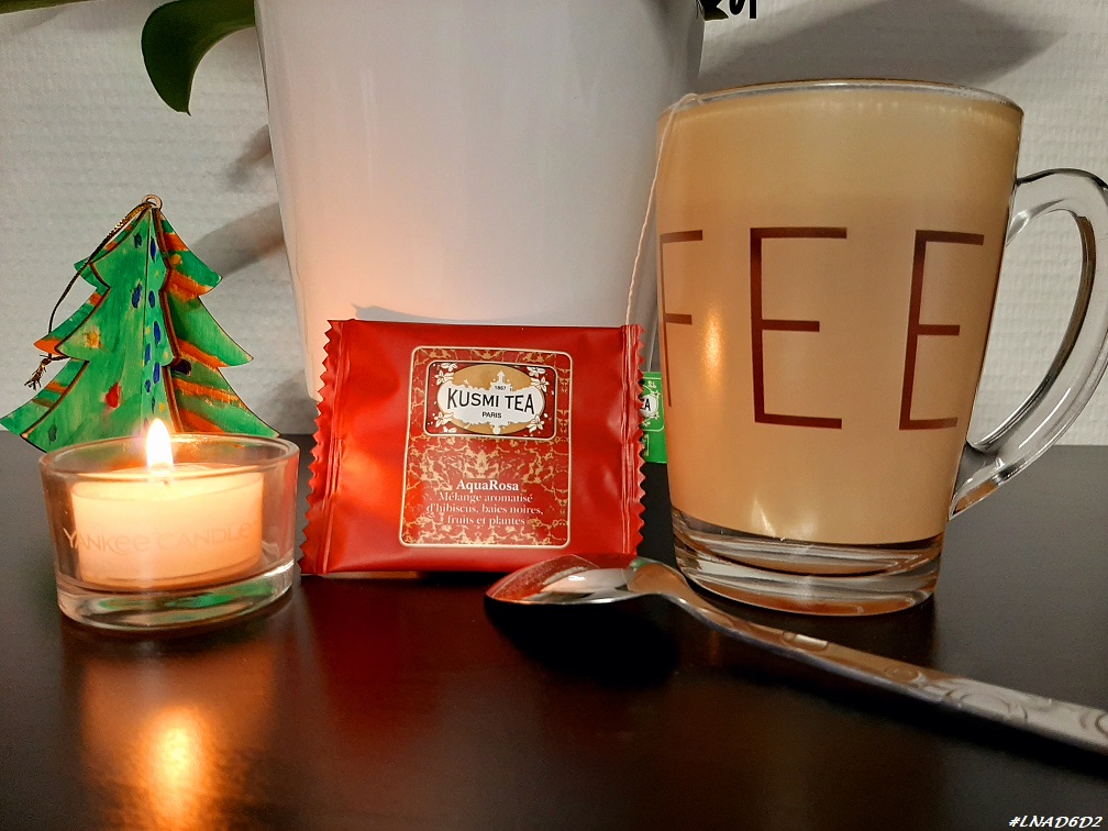 Dans mon calendrier Kusmi Tea j’ai eu un sachet d’une Infusion AquaRosa qui est un mélange de fruits rouges, d’hibiscus et de baies noires.