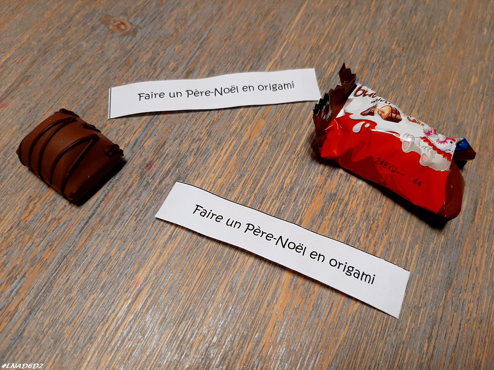 Dans leur calendrier « maison » ils ont trouvé leur petit mot du jour, le même pour tous les deux : Faire un Père-Noël en origami.