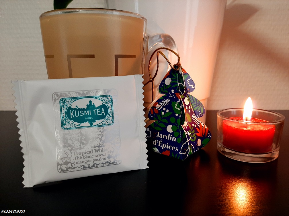 Dans mon calendrier Kusmi Tea j’ai eu un sachet de thé Tropical White qui est un thé blanc aromatisé à la mangue et fruit de la passion.
