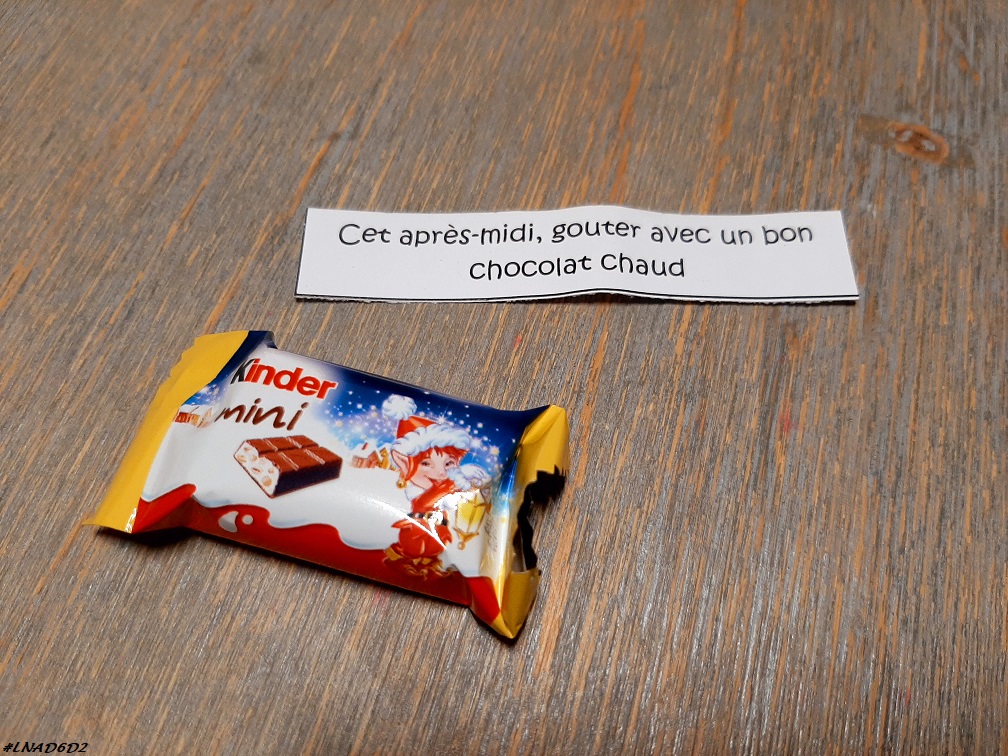 Dans leur calendrier « maison » ils ont trouvé leur petit mot du jour, le même pour tous les deux : Cet après-midi, gouter avec un bon chocolat chaud.