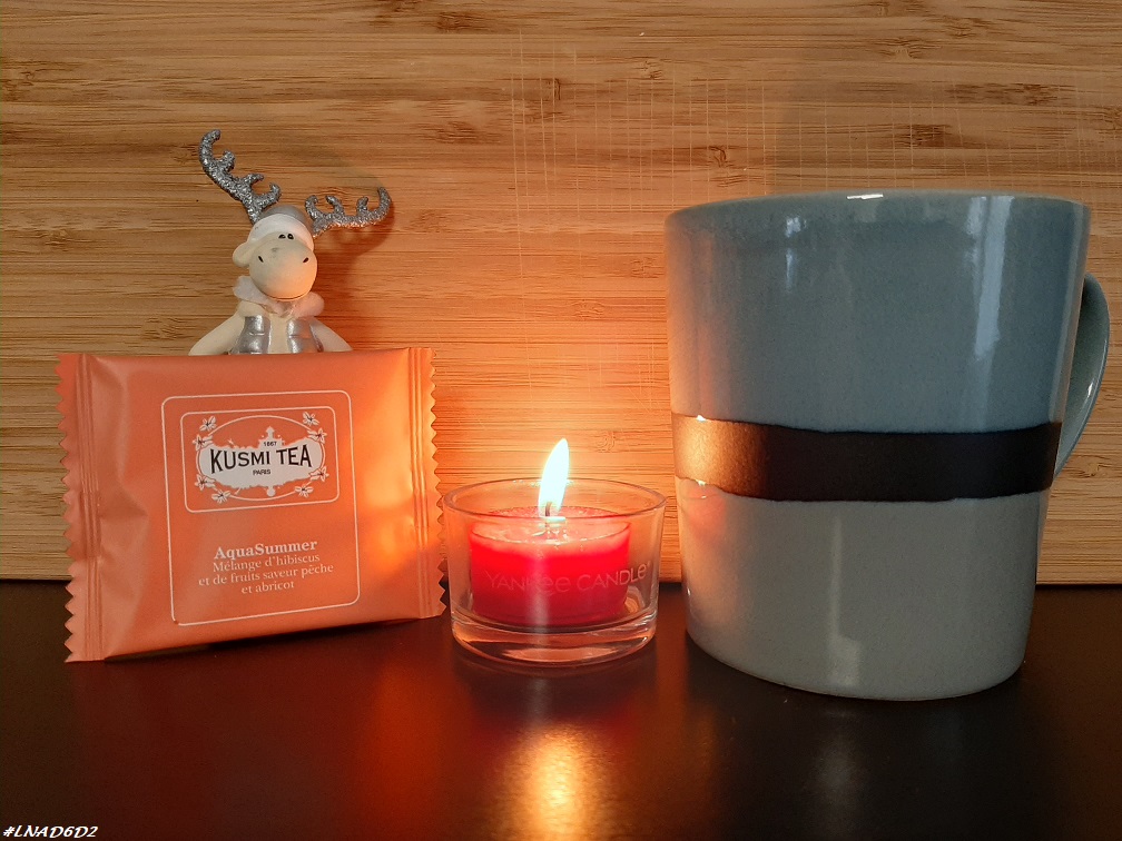 Dans mon calendrier Kusmi Tea j’ai eu un sachet d’une infusion AquaSummer qui est un mélange d’hibiscus et de fruits saveur pêche et abricot.
