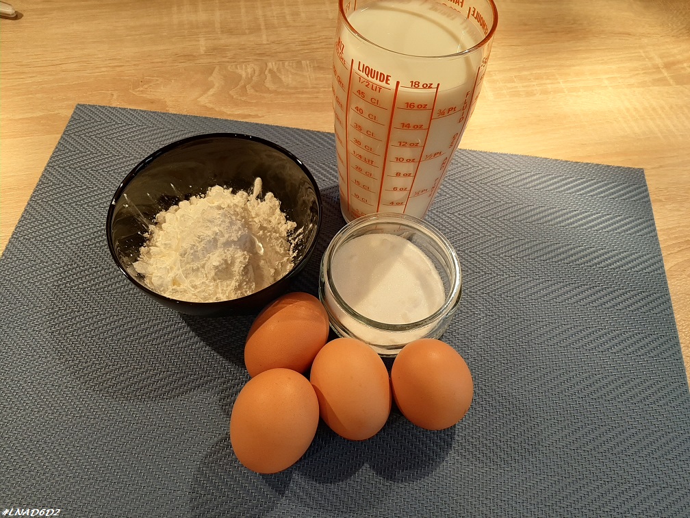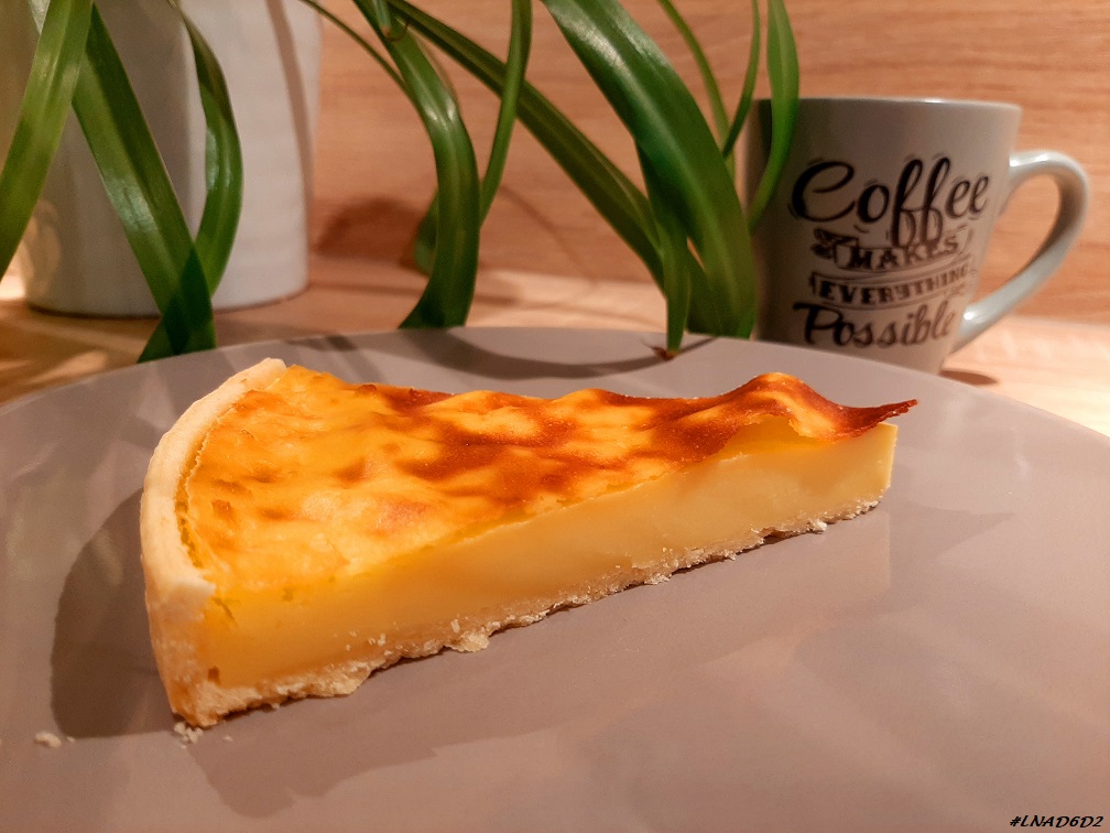 J’ai eu envie de tester une nouvelle recette et changer un peu des gâteaux que je fais habituellement. Je me suis donc laissée tenter par la recette de cette tarte au flan que j’ai vu passer par ici.