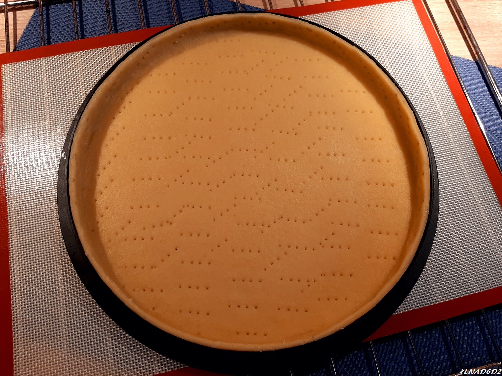• Mettre la pâte dans un moule à tarte et piquer la pâte.