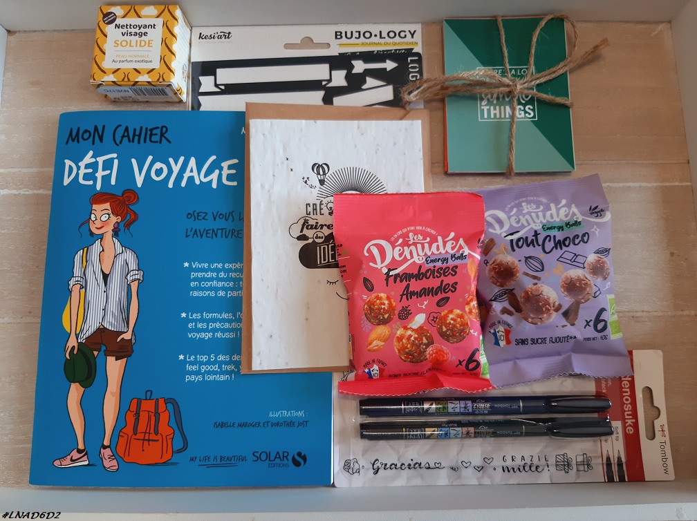 J’ai de suite craqué pour son concept qui est de fournir à la fois des articles pour faire son bujo mais pas seulement. En effet il y a aussi dans cette box de quoi penser à soi et se faire plaisir.