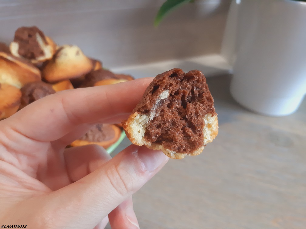 L’année dernière je t’avais déjà présenté une recette de madeleines marbrées au cœur fondant. Cette fois je reviens avec une autre recette de madeleines. Il s’agit toujours de madeleines marbrées (c’est ce qui fonctionne le mieux à la maison) mais sans cœur fondant cette fois.
