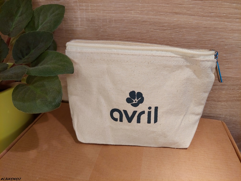 La surprise du mois est une trousse de la marque Avril : en coton bio très résistant, elle fera partie de tes indispensables pour partir en week-end ou en vacances !