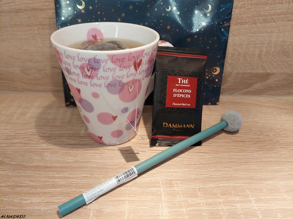Dans mon calendrier Dammann Frères j’ai eu un sachet d’un thé Flocons d’épices.