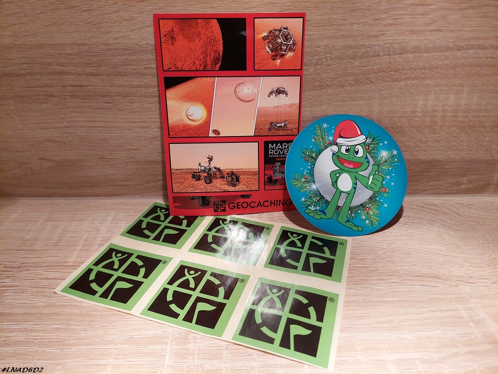 Dans son calendrier Geocaching l’Homme a eu des stickers Geocaching. Il va falloir les planquer, l’Asticot a déjà essayé de négocier de pouvoir les utiliser pour décorer les meubles du salon.