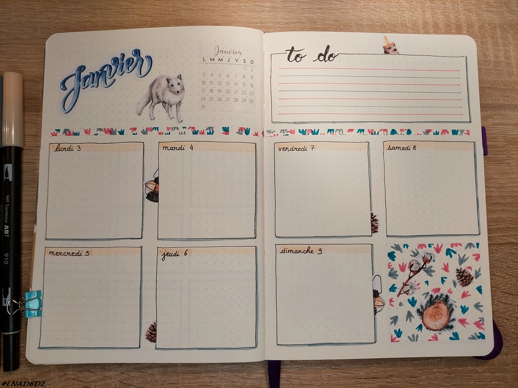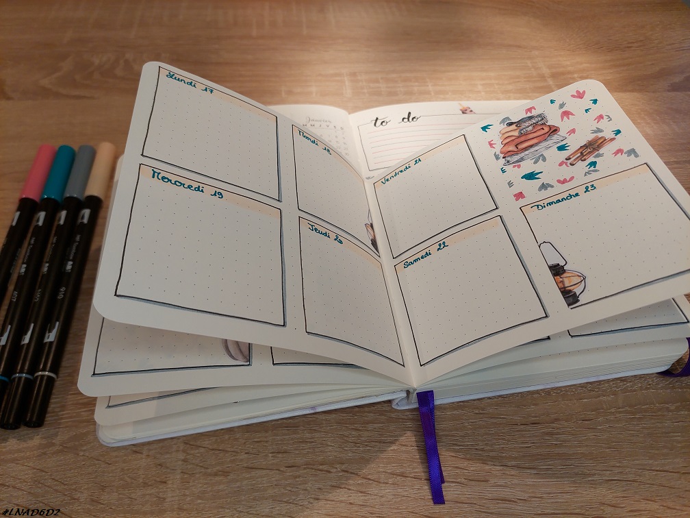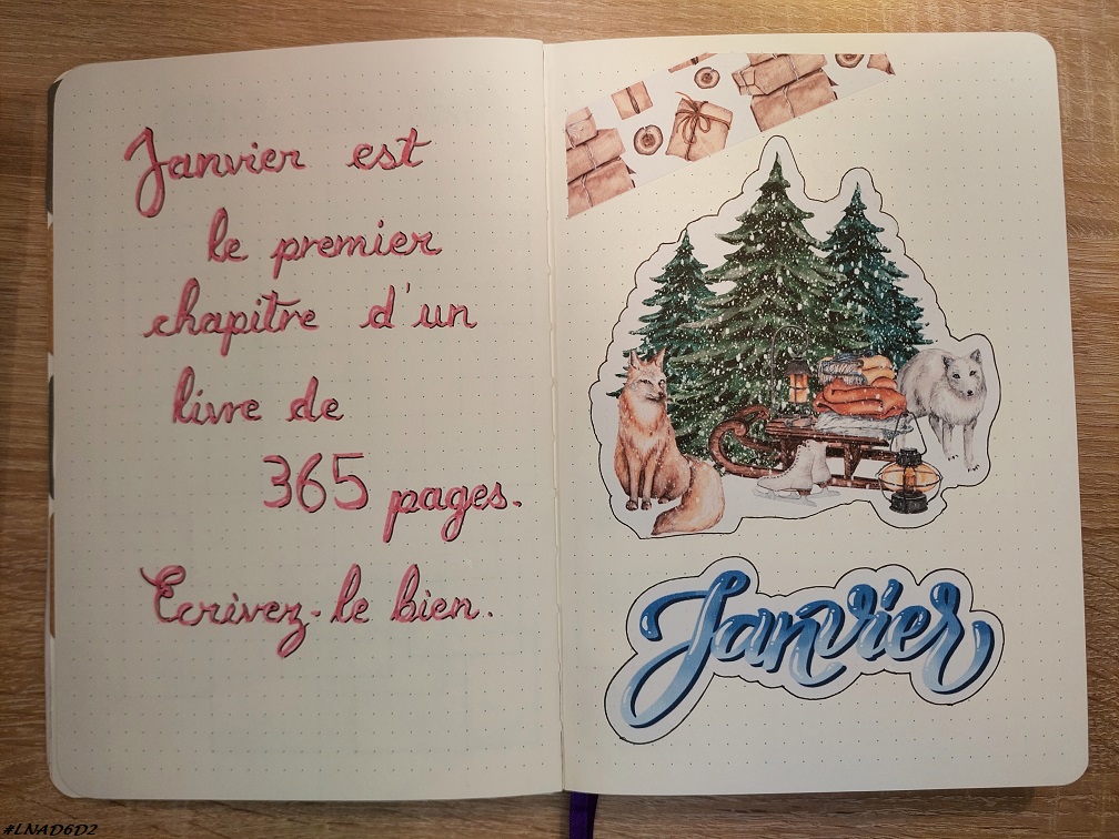De plus, j’ai envie cette année, d’être un peu plus positive j’ai donc rajouté une page citation en face de la page de couverture de mon mois et j’essaie aussi pour ce mois de Janvier de rajouter une page « 1 jour / 1 pensée positive ».