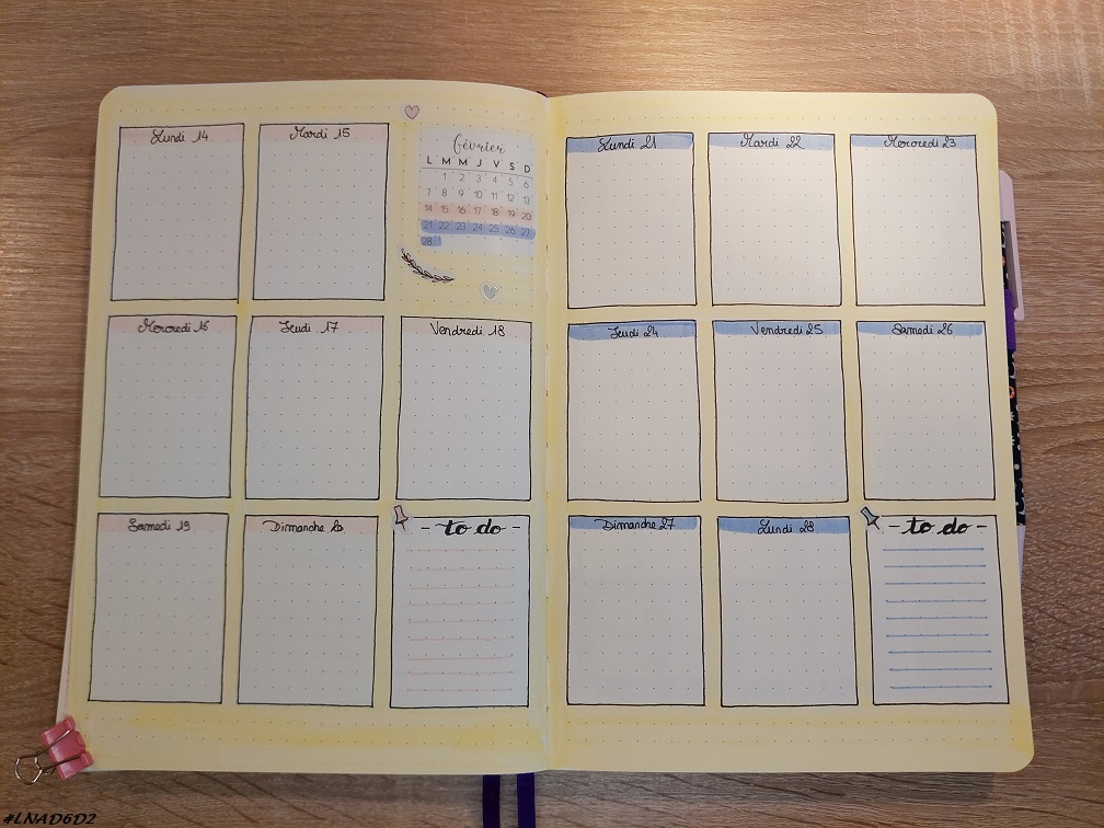 Au mois de Janvier j’ai utilisé beaucoup de pages pour les différentes semaines du mois. Je me suis rendue compte que si je continuais sur cette lancée tous les mois alors il me faudrait très certainement deux carnets pour tenir l’année, ce que je ne veux pas.