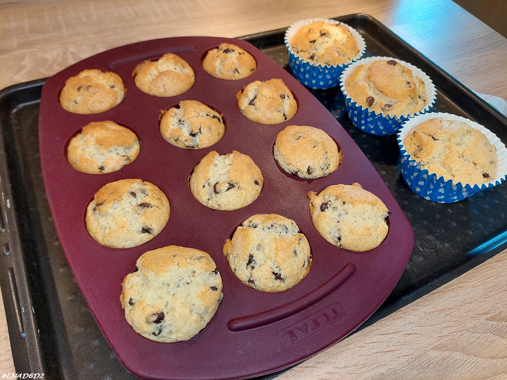 Ces muffins étaient très bons et absolument pas secs. Ils ont fait le bonheur de l’Asticot lors de son goûter à l’école, mais aussi de la Mandarine et du reste de la famille à la maison.