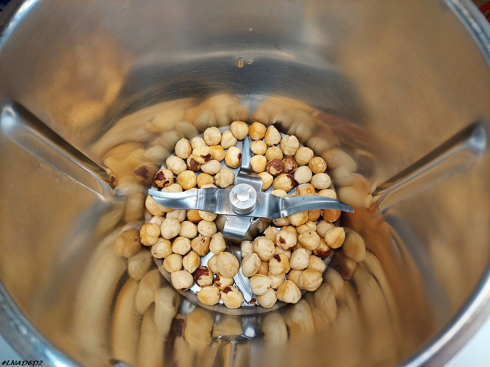 - Verser les noisettes dans un mixeur et mixer à vitesse lente jusqu’à obtenir une poudre fine ;