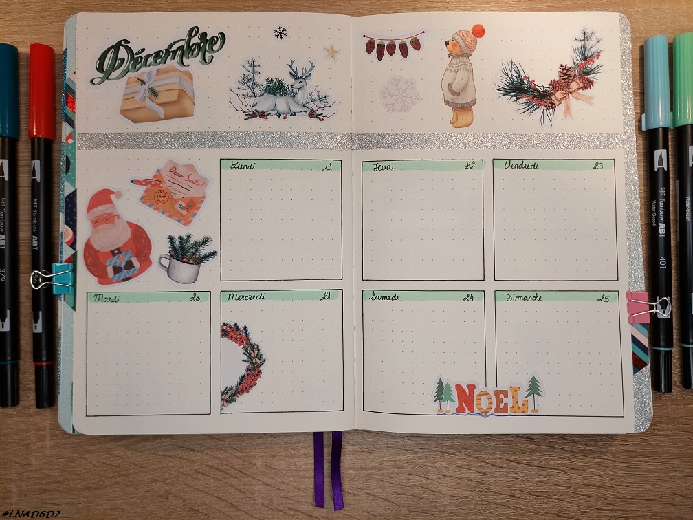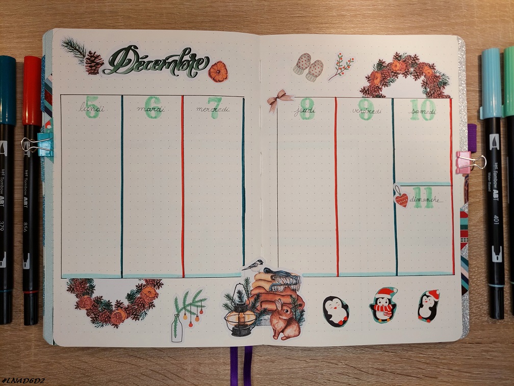 J’aime bien cette ambiance et les décorations. A défaut d’avoir déjà décoré la maison j’ai au moins déjà l’ambiance dans mon bujo 🙂