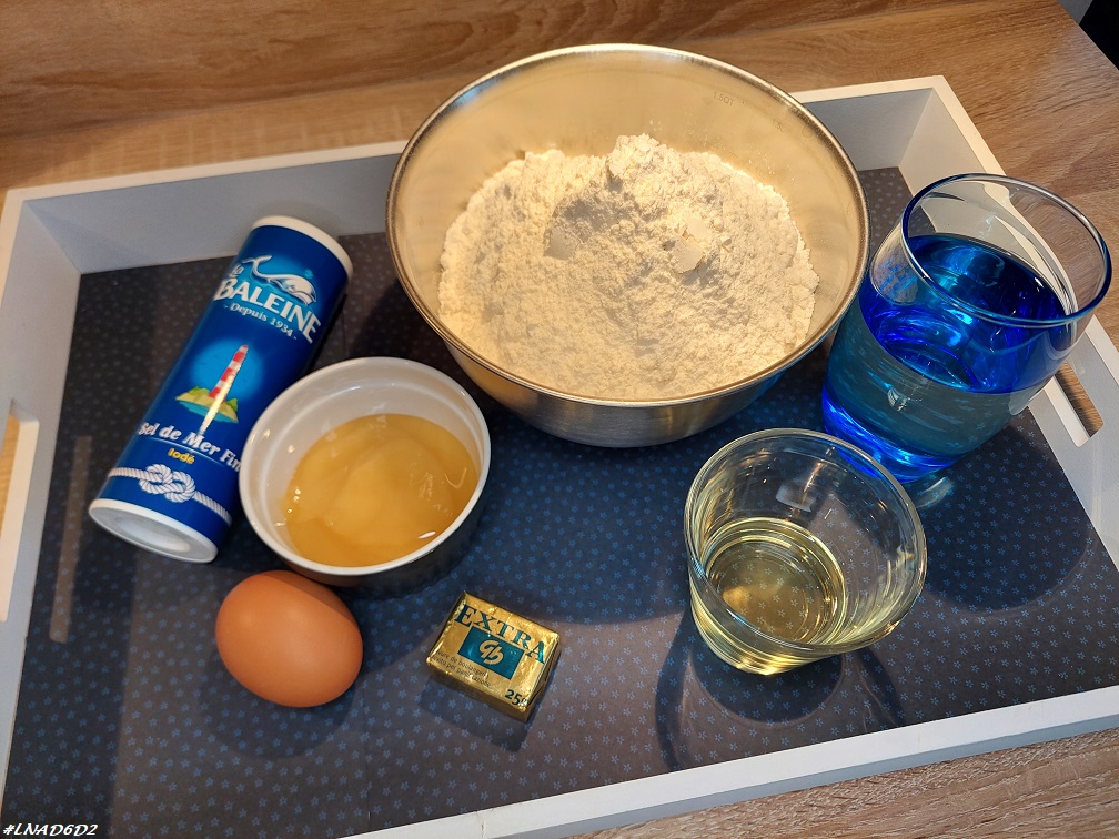 - Ajouter la farine, l’œuf et le sel puis pétrir 5 min, fonction épi ;