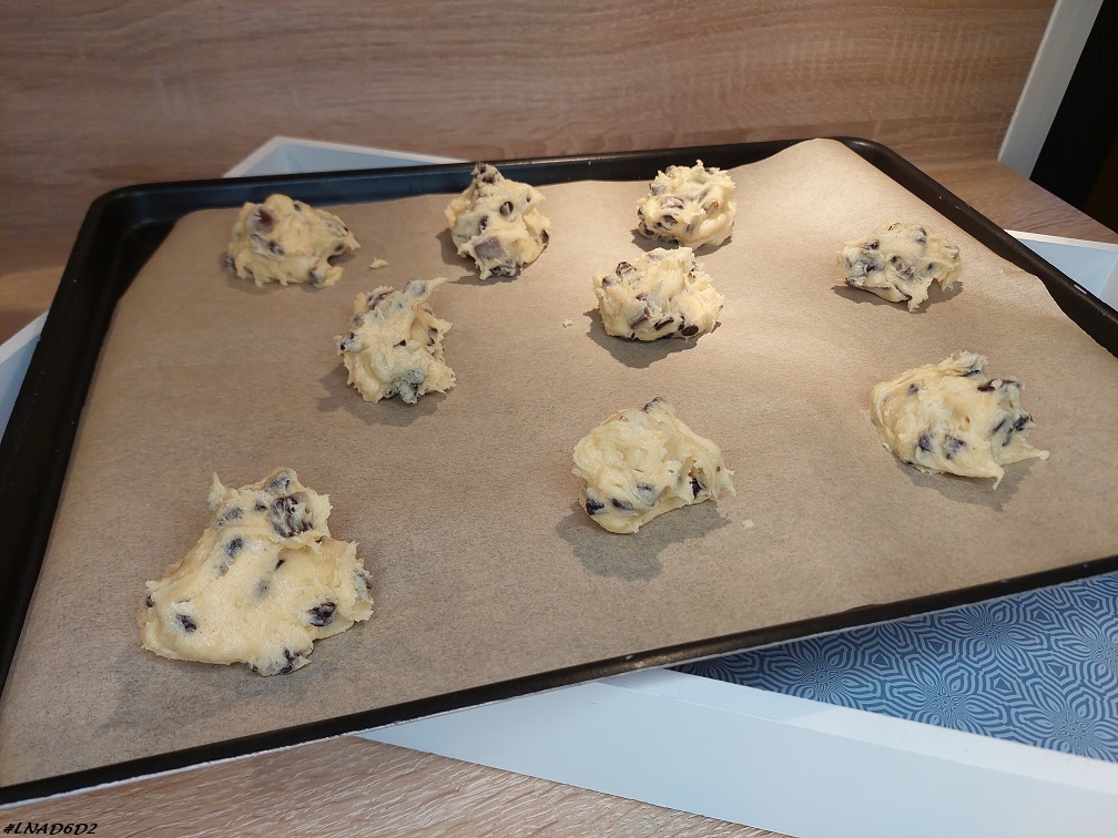- Prélever des boules de pâte et les déposer sur la plaque à pâtisserie en les espaçant bien ;
