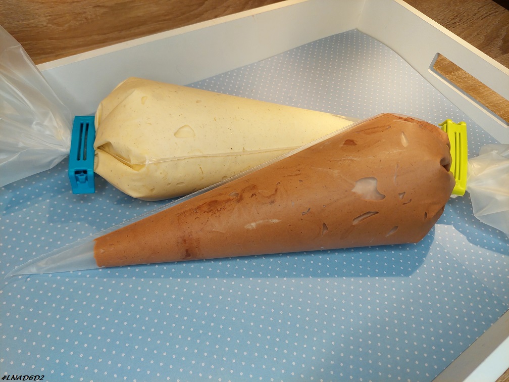 - Verser la pâte dans une poche à douille et réserver de côté.