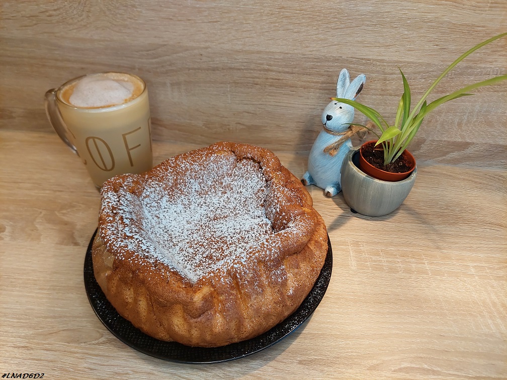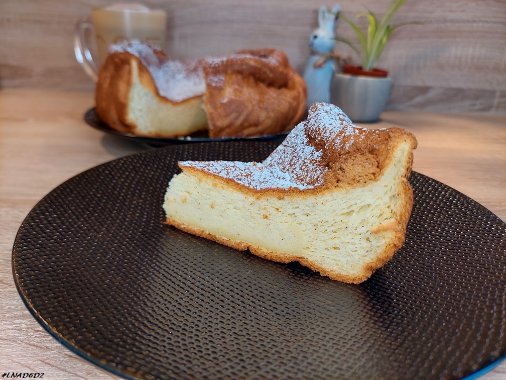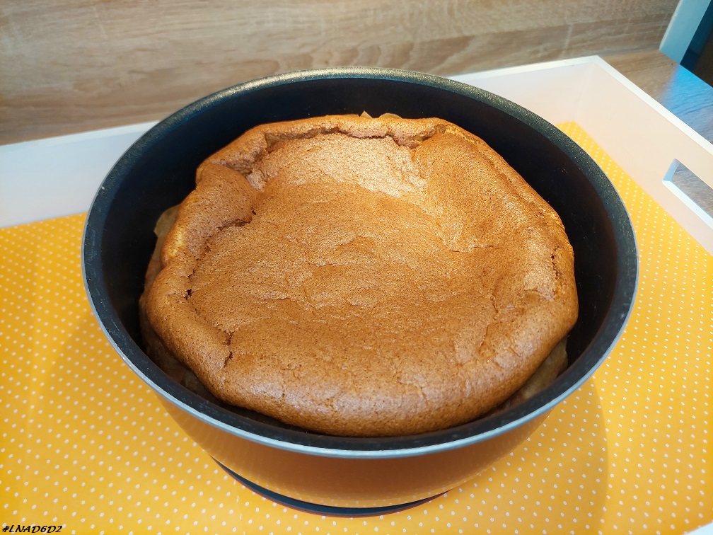 Le gâteau que j’ai obtenu n’est pas aussi moelleux et aérien que dans la publication d’origine, mais c’est de ma faute. En effet, j’ai complètement oublié que la cuisson de ce gâteau devait se faire au bain-marie.