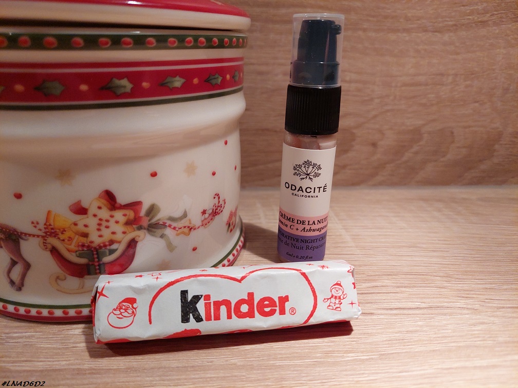 Dans mon calendrier Mademoiselle Bio j’ai eu une crème de nuit de Odacité. Je n’ai pas l’habitude d’utiliser des crèmes de nuit, mais celle-là je vais la tester et l’utiliser correctement. J’ai vu le prix du pot de 50ml et j’ai eu un choc !!