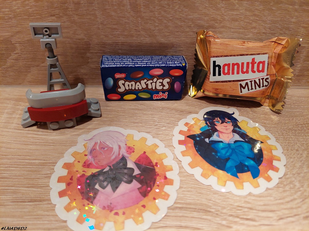 – Deux stickers Les mémoires de Vanitas pour la Mandarine. Elle est aux anges. C’est un manga et un anime qu’elle apprécie beaucoup. J’ai trouvé ces stickers sur une boutique Etsy, chez Cerumoce.
