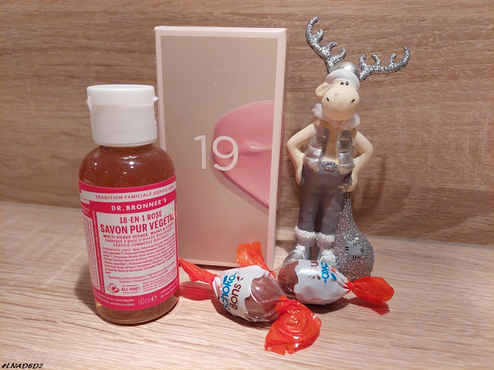 Dans mon calendrier Mademoiselle Bio j’ai eu un gel lavant, de la marque Dr Bronner’s.