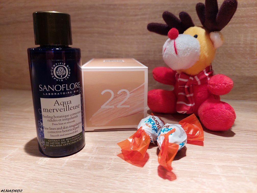 Dans mon calendrier Mademoiselle Bio j’ai eu une lotion Aqua Merveilleuse, de la marque Sanoflore.