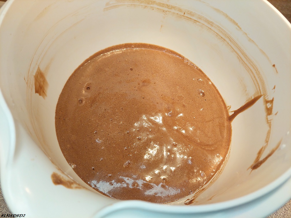- Ajouter le chocolat fondu dans les jaunes et bien mélanger ;