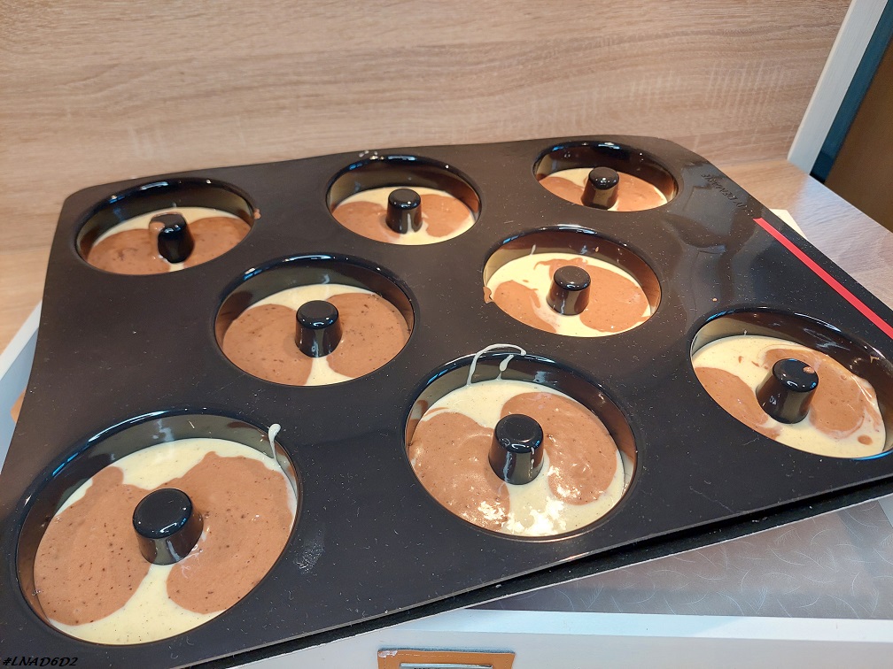 De plus, on est d’accord, ça ne me donnera pas de vrais donuts parce qu’il n’est pas question de friture ici, mais ça change un peu la forme des gâteaux, c’est ça qui m’a plu.