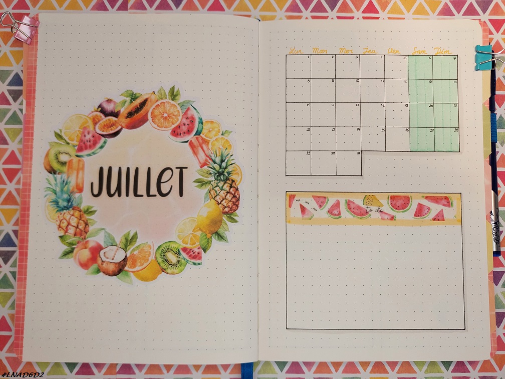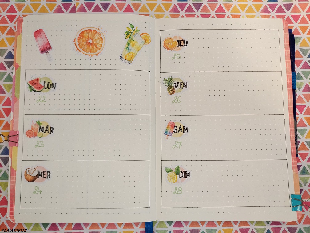 Pour ce mois de juillet dans mon bujo, j’ai utilisé les stickers reçus dans la box été de Adylshop que j’ai achetée et dont je te parlais ici.