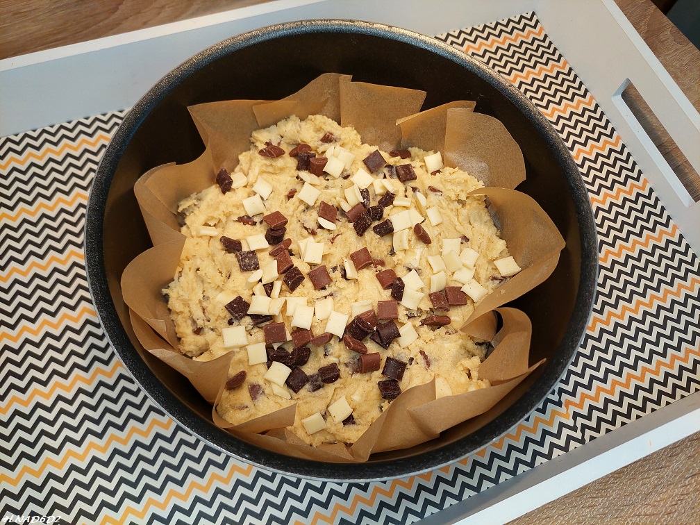 2 réflexions au sujet de « Cuisiner – Le cookie géant aux trois chocolats »