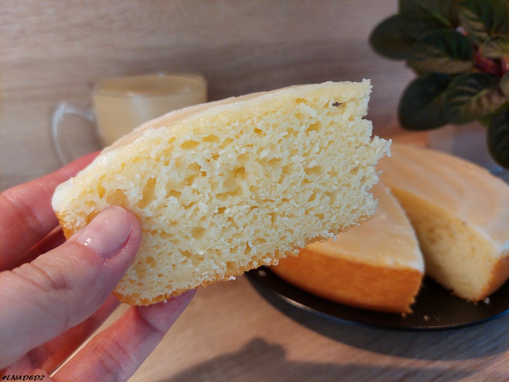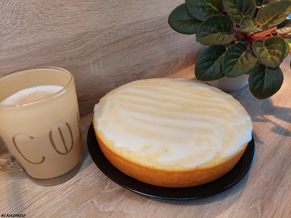 Ce gâteau est très bon et a un bon goût de citron, surtout que je lui ai rajouté un glaçage fait avec le reste de jus de citron que j’avais.