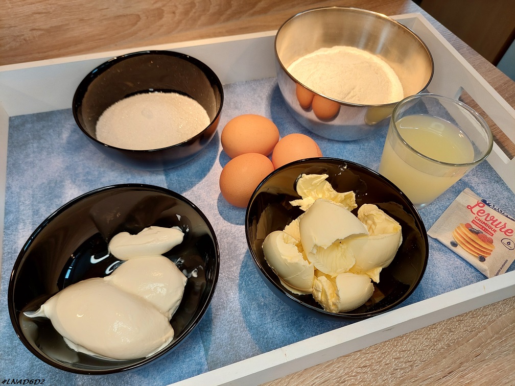 - Dans un saladier, mélanger les œufs avec le sucre, le jus de citron et le mascarpone ;