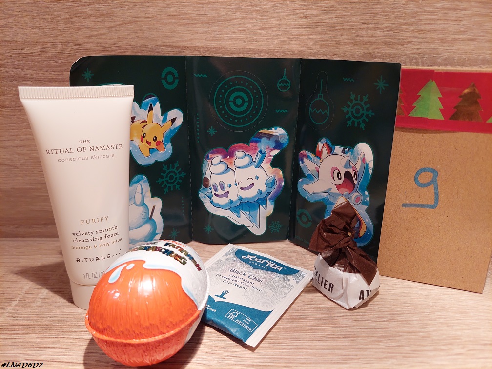 L’Homme quant à lui a eu un Kinder surprise dans son calendrier Kinder, une mousse nettoyante Ritual of Namaste dans son calendrier Rituals et des stickers dans son calendrier Pokémon.