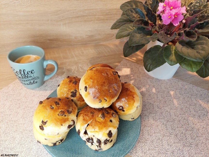 Ces petites brioches ne sont pas mauvaises du tout. Je pense toutefois que les miennes auraient mérité un tout petit peu plus de cuisson … j’ai toujours plus de mal à évaluer si c’est bien cuit quand je fais des brioches.