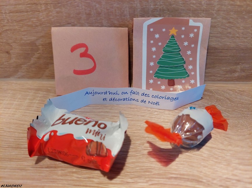 Dans leur calendrier « maison », les surprises du jour étaient le même petit mot pour les 2: Aujourd’hui, on fait des coloriages et décorations de Noël. En réalité nous avons fait du Diamond painting, une découverte pour nous, et c’était plutôt sympathique.