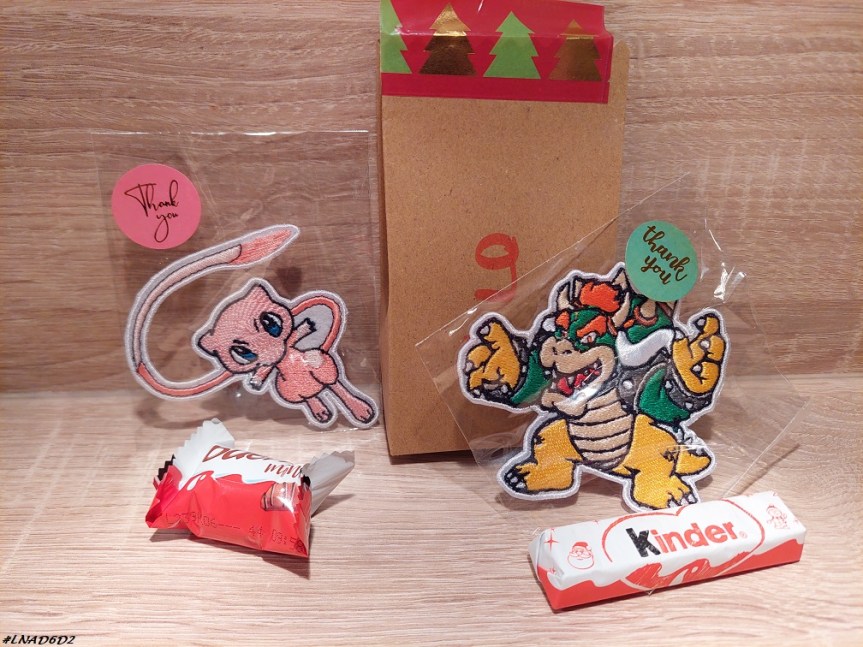 Dans leur calendrier « maison », les surprises du jour étaient un patch Mew pour la Mandarine et un patch Bowser pour l’Asticot. Les deux patch viennent de la boutique Etsy de lAtelierdelartiste