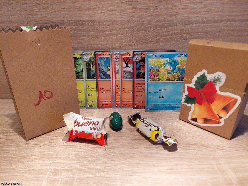 Dans leur calendrier « maison », les surprises du jour étaient des cartes Pokémon pour la Mandarine et un chocolat pour l’Asticot.