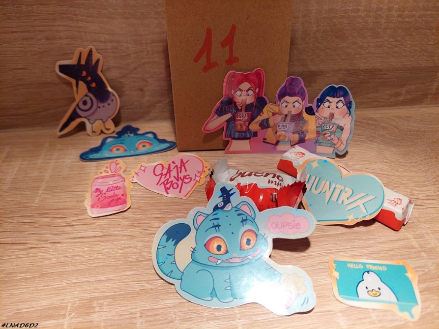 Dans leur calendrier « maison », les surprises du jour étaient des stickers K-pop demon hunters pour les deux. Ils viennent de la boutique LeStudioNekoShop.