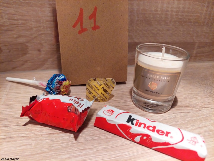 L’Homme, de son côté, a trouvé un kinder chocolat dans son calendrier Kinder, une bougie dans son calendrier Rituals, ainsi qu’une sucette dans son calendrier Chupa Chups.