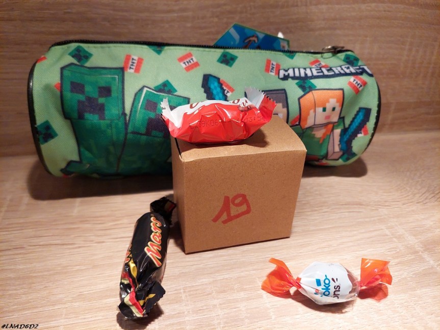 Dans leur calendrier « maison », les surprises du jour étaient un mini Mars pour la Mandarine et une trousse Minecraft pour l’Asticot.