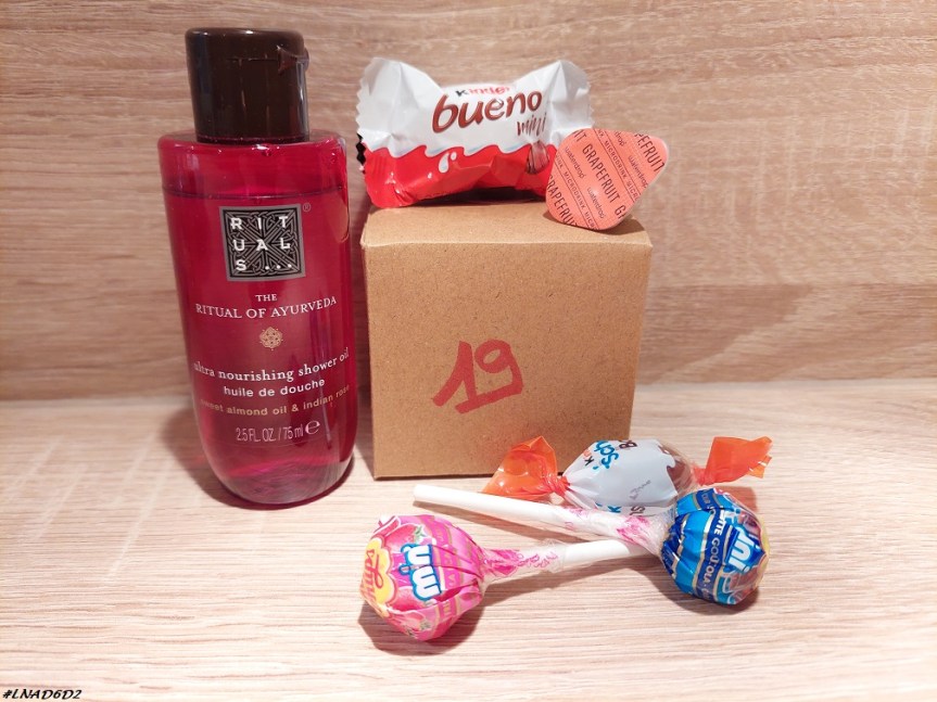 L’Homme, de son côté, a trouvé un Schokobon dans son calendrier Kinder, une huile de douche dans son calendrier Rituals, ainsi que des sucettes dans son calendrier Chupa Chups.