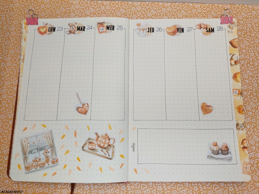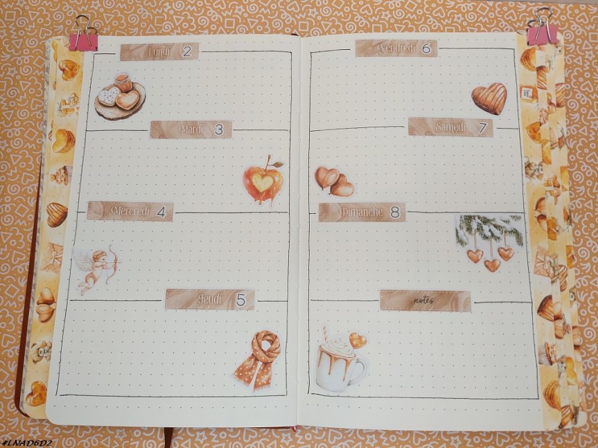 Et comme par hasard, AdyLShop, chez qui j’achète habituellement mes stickers, a lancé en ce début d’année un abonnement mensuel permettant de recevoir chaque mois une collection à utiliser le mois suivant. Cet abonnement comprend cinq planches de stickers (couverture, calendrier du mois, jours de la semaine, headers et stickers thématiques), un set de onze stickers grand format ainsi qu’un rouleau de washi tape coordonné.