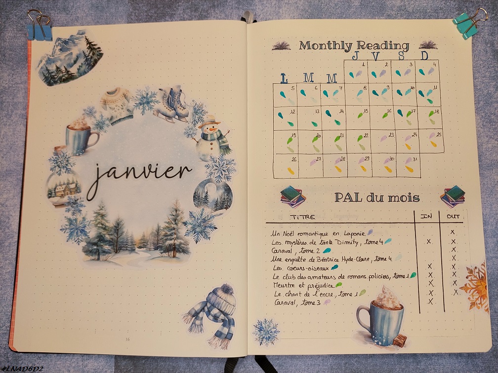 Je dois reconnaitre que je tâtonne encore par rapport aux pages que j’aimerais avoir tous les mois dans mon carnet et la manière de présenter mes différentes lectures. Mais voici mon mois de janvier dans mon carnet.